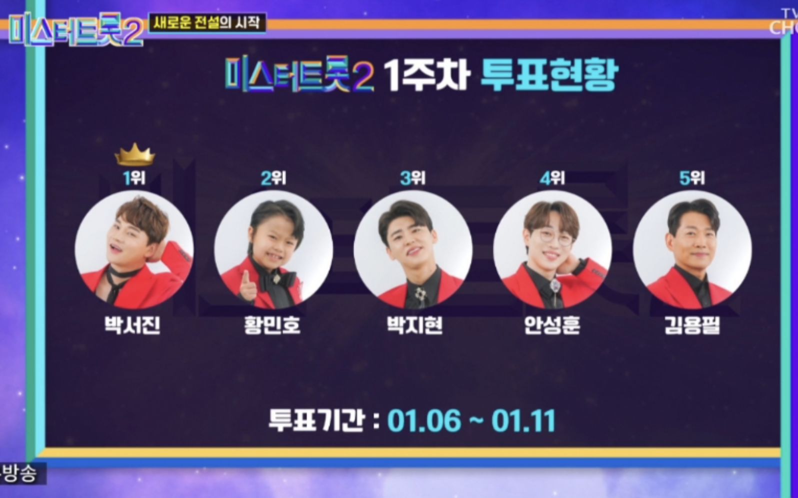 2위 박서진, 3위 진해성, 4위 황민호, 5위 안성훈, 6위 박지현, 7위 나상도가 상위권에 이름을 올리며 팬들의 뜨거운 관심을 입증했습니다.